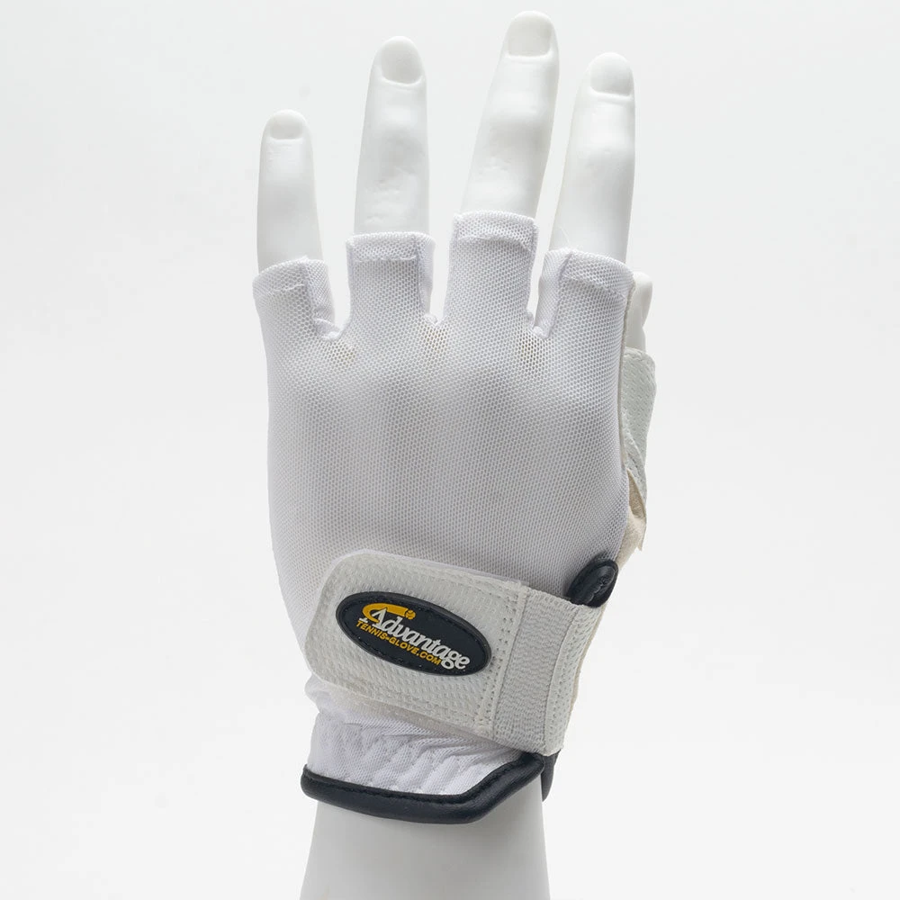 This unique patented design provides a non-slip grip, maximum comfort and absorbs shock, giving each player total control and extended playing time with less hand fatigue during their game. The synthetic leather construction is combined with a cool mesh back that provides a responsive feel and that also reduces heat and increases overall breathability. The half finger design will keep your hand warm on cool days while still allowing you to feel the grip for ultimate control. Get the tennis glove players will be asking for by name…The Advantage Tennis Glove.
