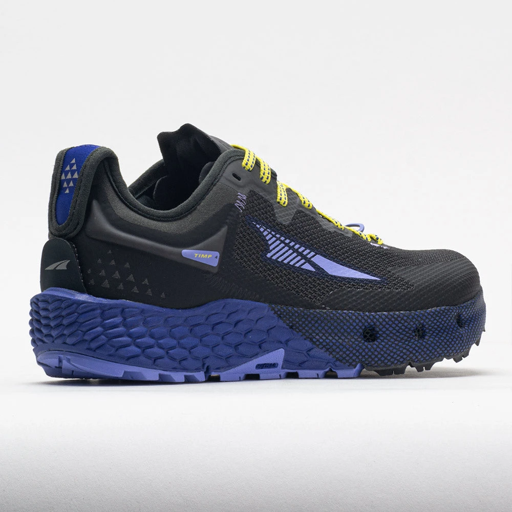 Enjoy lasting comfort for many miles in the Altra Timp 4! This ultra-cushioned trail cruiser receives a heel-to-toe upgrade, featuring a durable upper, soft midsole and grippy outsole. Extra drainage ports in the forefoot help you stay dry while passing through streams, creeks and puddles. Every stride on the Altra EGOâ„¢ Max midsole keeps you energized during long hikes or trail runs. Dominate the dirt with multi-directional MaxTracâ„¢ outsole lugs. Built for long days on the trail, the Altra Timp 4 goes the distance!
