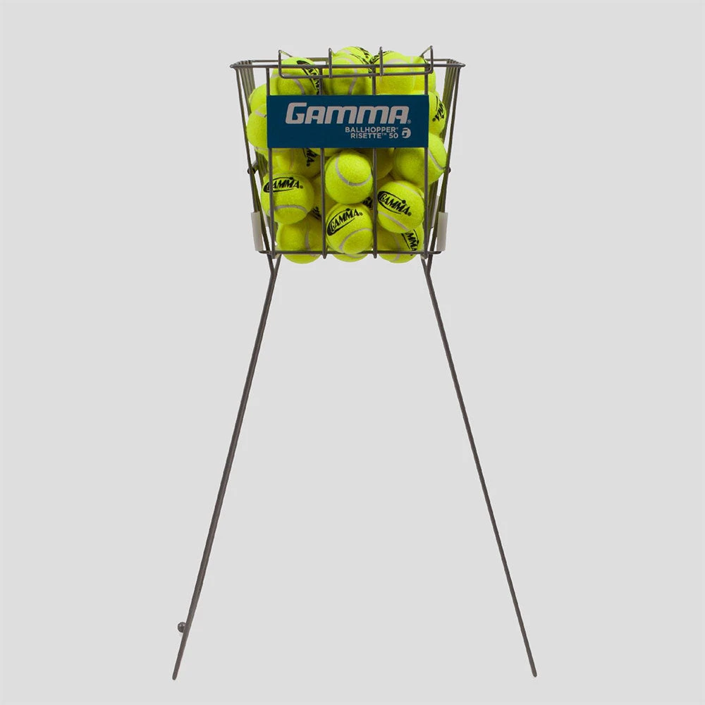 Features an improved weld design and new Diamond Clad weather resistant coating. A 50 ball capacity hopper, the Risette 50 features convenient handles that make for easy pick-up and flip over to stand basket at fingertip height, while attached lid prevents spilling.