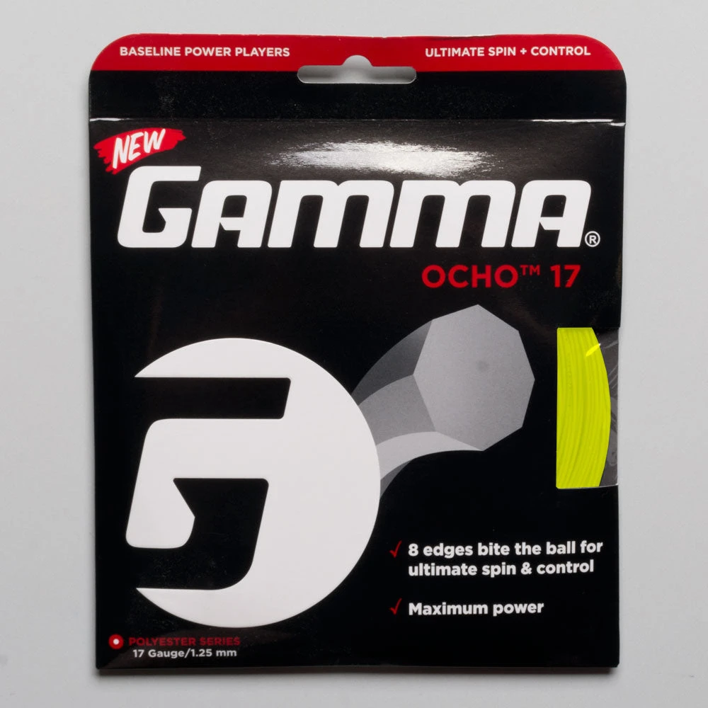 The unique eight edge design of Gamma Ocho 17 tennis string allows it to bite the ball to create optimum spin and control. The proprietary material makes it very responsive with a ton of feedback. Youll appreciate excellent tension maintenance.