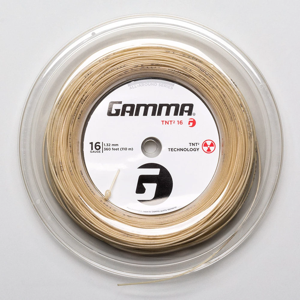 Gamma TNT2 16 360′ Reel of tennis string provides even more power and control with less shock and a more lively feel. The processing of this string enhances playability, durability and control for all playing styles.