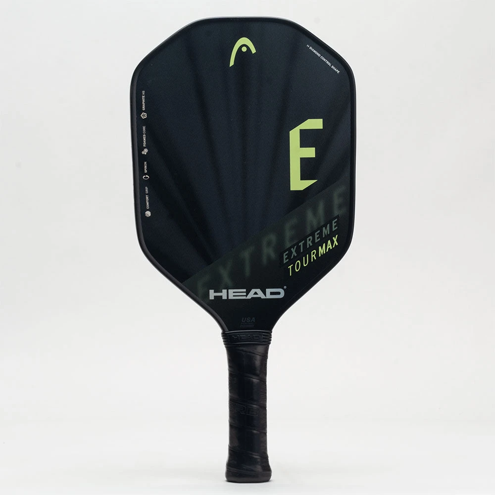 With additional power and optimal touch, the HEAD Extreme Tour Max 2023 Pickleball Paddle is the heaviest option in the series. Enjoy excellent feel and control from the Optimized Tubular Construction (OTC) honeycomb polymer core and carbon graphite hitting surface (GHS). A unique Diamond Shape and Extreme Spin texture give you all the power you need to dominate.