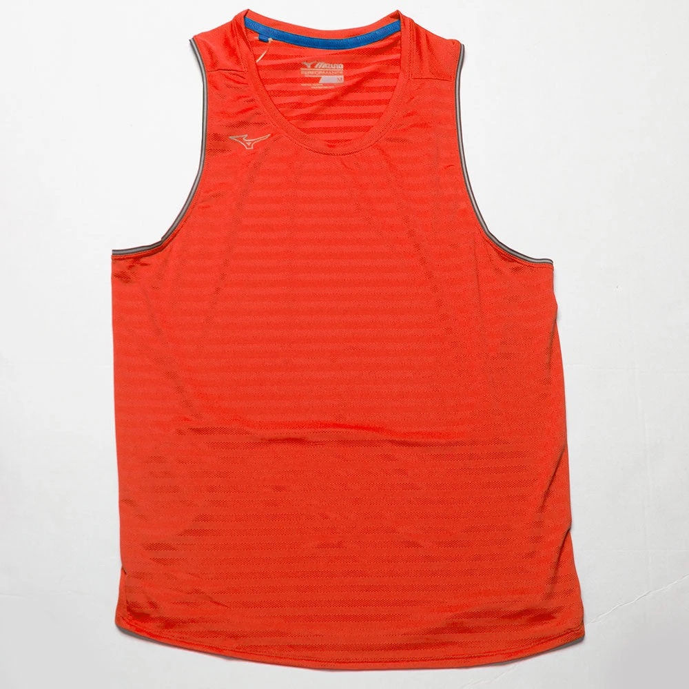 Well-ventilated with lightweight mesh striping, the Mizuno Alpha Eco Singlet adds comfort to your runs. This running singlet contains recycled materials to blend performance and sustainability.
