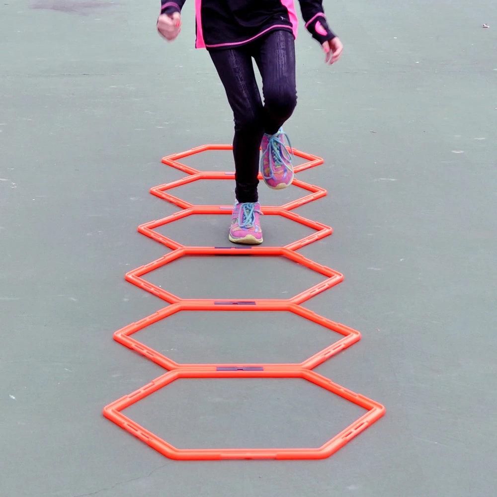 Practice your footwork to stay quick and nimble on the court with the Oncourt Offcourt Hexo Agility Rings! This versatile training tool is perfect for tennis players who want to improve their agility. They clip together and pull apart easily, helping you create a wide variety of shapes. You can also use them as targets on the court to practice your precision. With the Oncourt Offcourt Hexo Agility rings, the possibilities are unlimited!