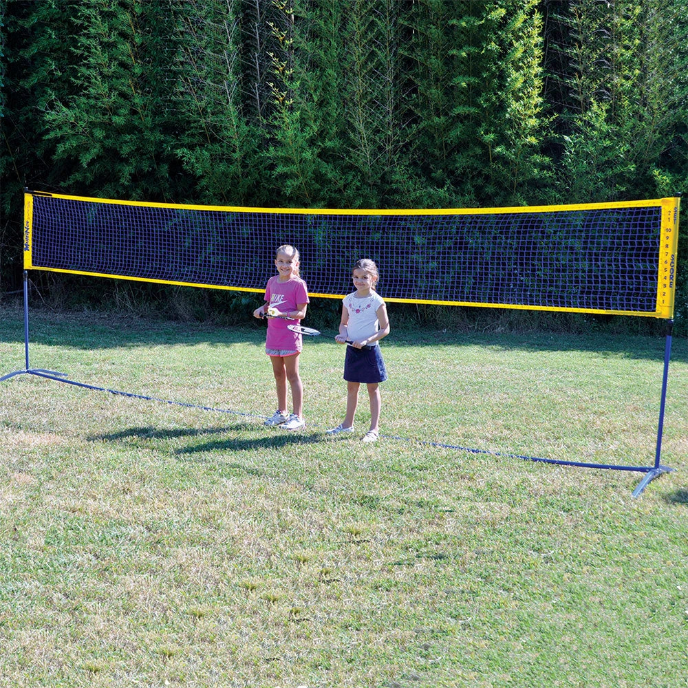 The Adapter Kit conveniently converts the 18-foot MultiNet to the smaller 9-foot MultiNet Mini. The kit includes the 3-foot middle adapter that reduces the 18-foot MultiNet to the 9-foot MultiNet Mini, a 9-foot net, and a 9-foot Airzone band to raise the height of the net for effective visual training. The MultiNet Mini is perfect for driveway or backyard use (tennis or badminton). Note: This product does not include the Adapter Kit.