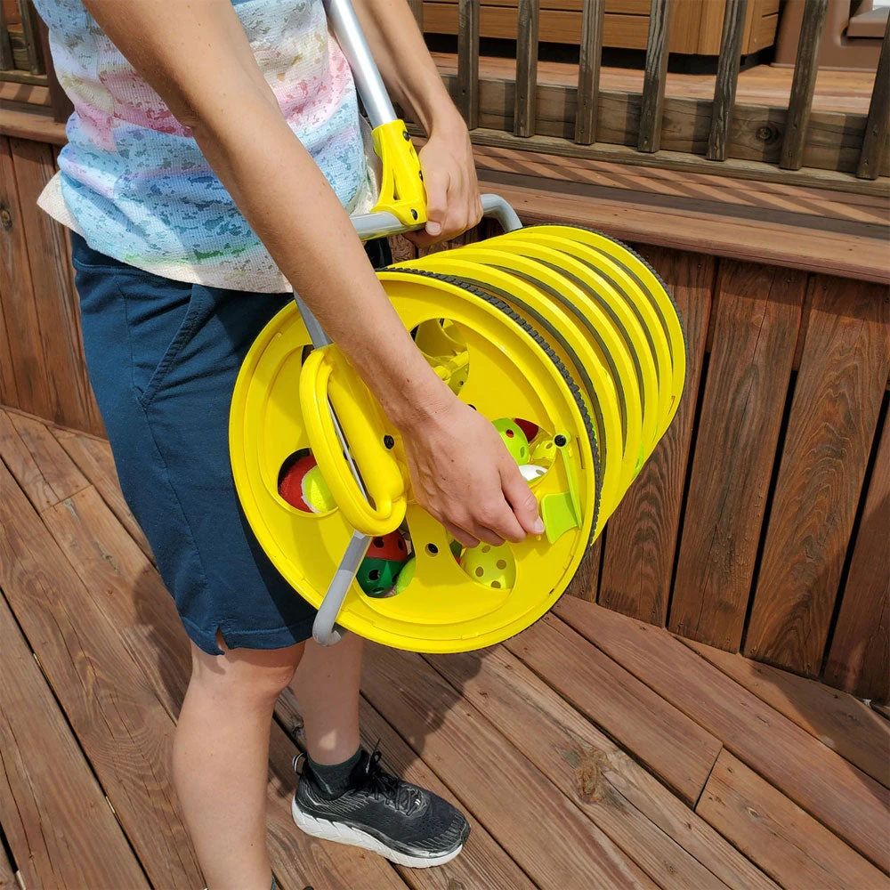 The Oncourt Offcourt MultiRoller is a unique way to pick up tennis balls (including larger red balls) and pickleballs. The MultiRoller tennis ball picker scoops up balls rolling either forward or backward. When not in use, it stands up for convenient storage or staying courtside. This multifunctional device does the hard work, so you can pick up balls without bending over and hurting your back. Forget all the hassle–the Oncourt Offcourt MultiRoller makes picking up balls fun!