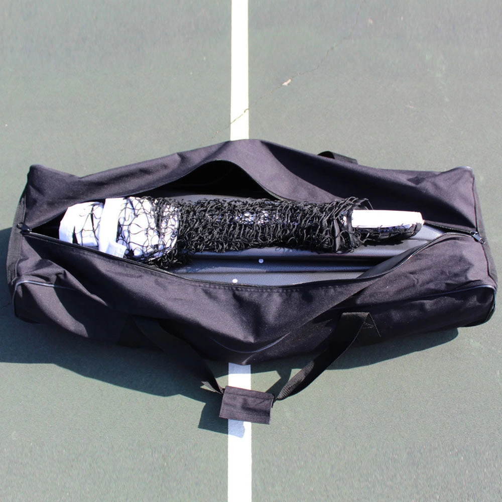 The Oncourt Offcourt PickleNet Deluxe will allow you to play a game of pickleball on any flat surface. This portable system is constructed with locking wheels that allow it to easily be rolled into place and to the side between games. Fast and easy assembly make this net a cinch to set up.
