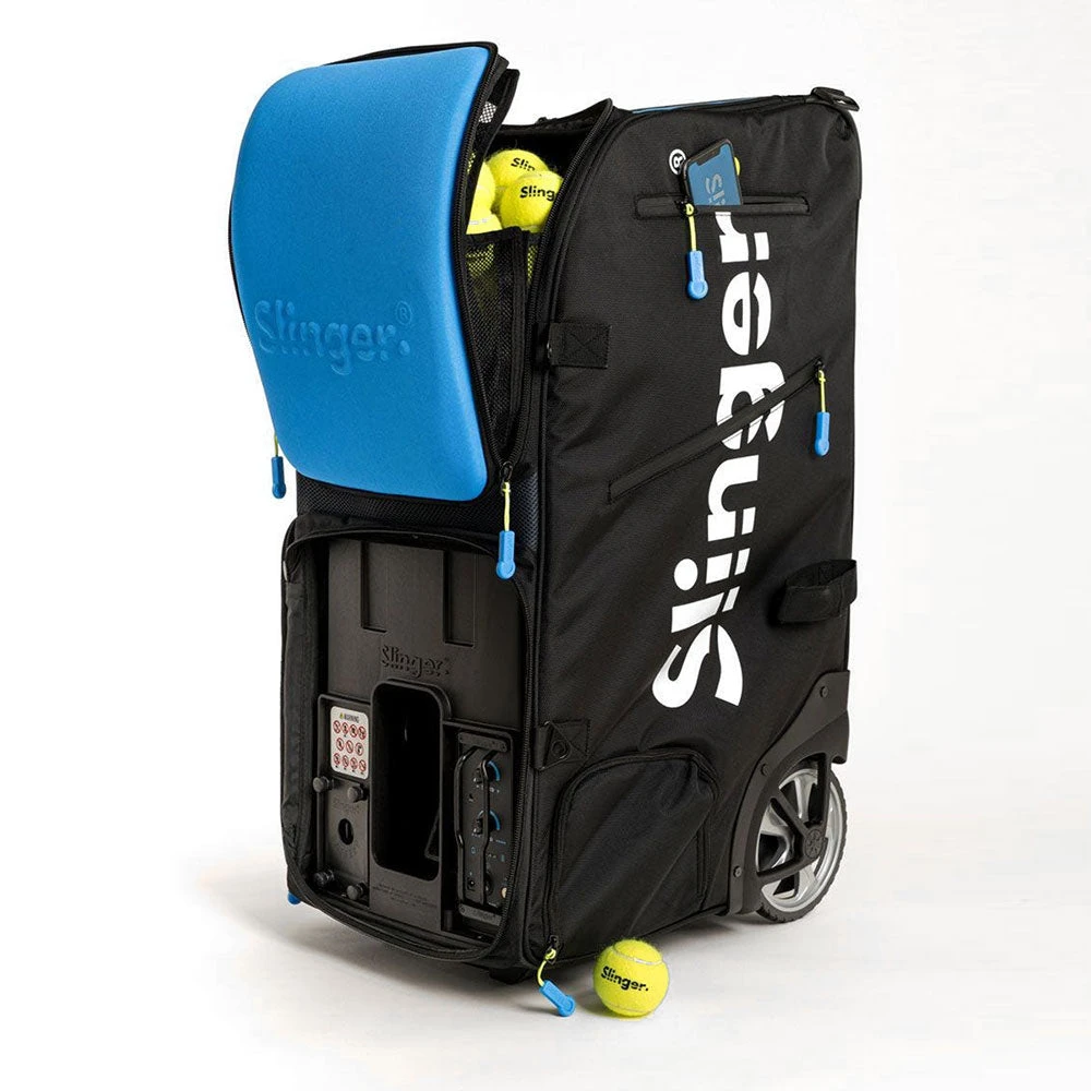 Made with portability in mind, the Slinger Ball Machine Slam Pack is a versatile training partner! Place it anywhere on the court to practice any shot type at various speeds, frequencies and elevations. If you’re looking for the ultimate training tool, the Slinger Ball Machine Slam Pack takes your tennis game to another level!