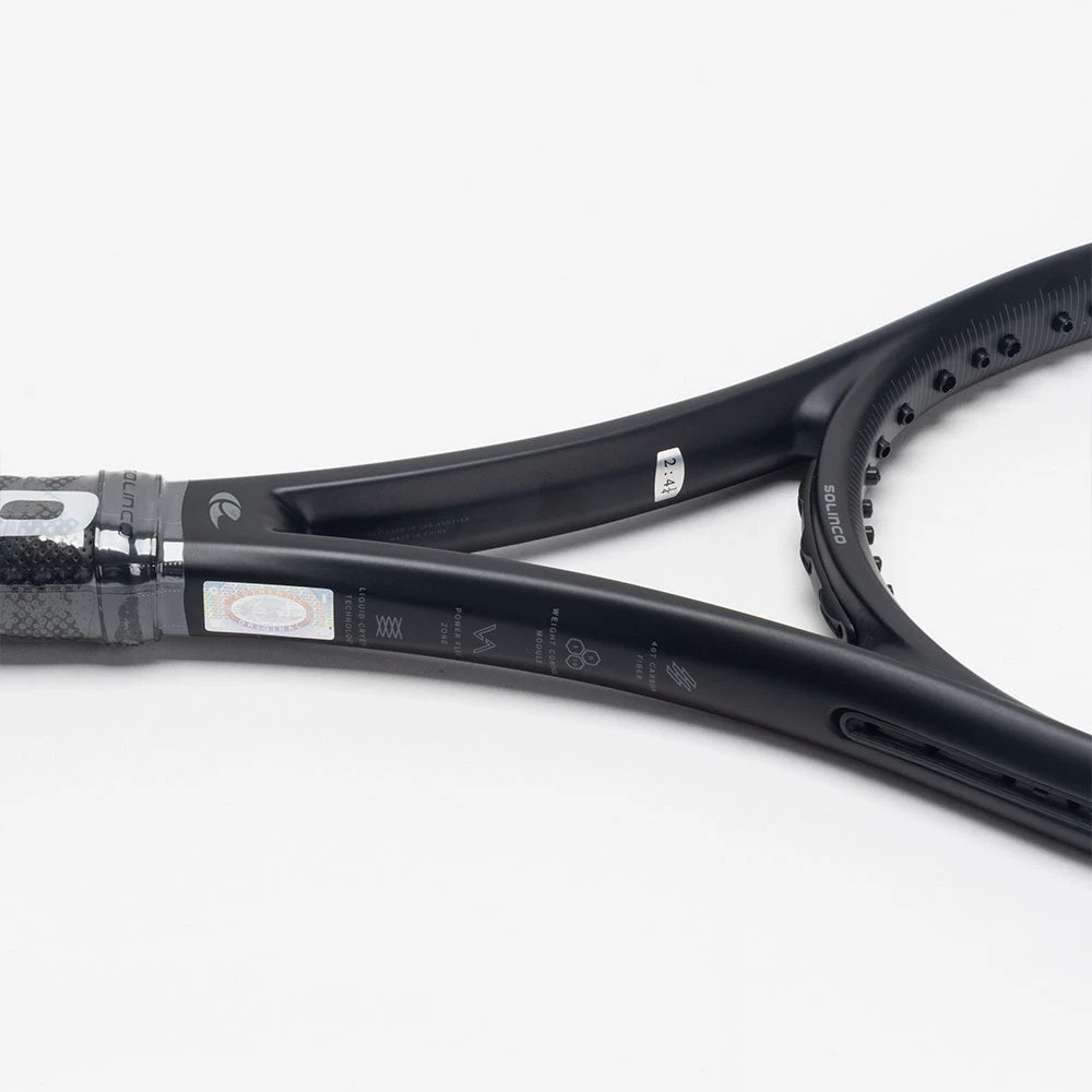 Fast, explosive and powerful, the Solinco Blackout 265 is a dangerous weapon for intermediate and advanced players. This tennis racquet offers easy handling and a solid feel to put away points with authority. Enjoy a plush feel at contact from the Liquid Crystal technology in the layup, which reduces vibrations and eases arm fatigue. The 40T Carbon Fiber technology at the three and nine o’clock positions increase the sweet spot while improving stability. If you’re an aggressive striker who likes to dictate the pace of play, control the court with the Solinco Blackout 265!