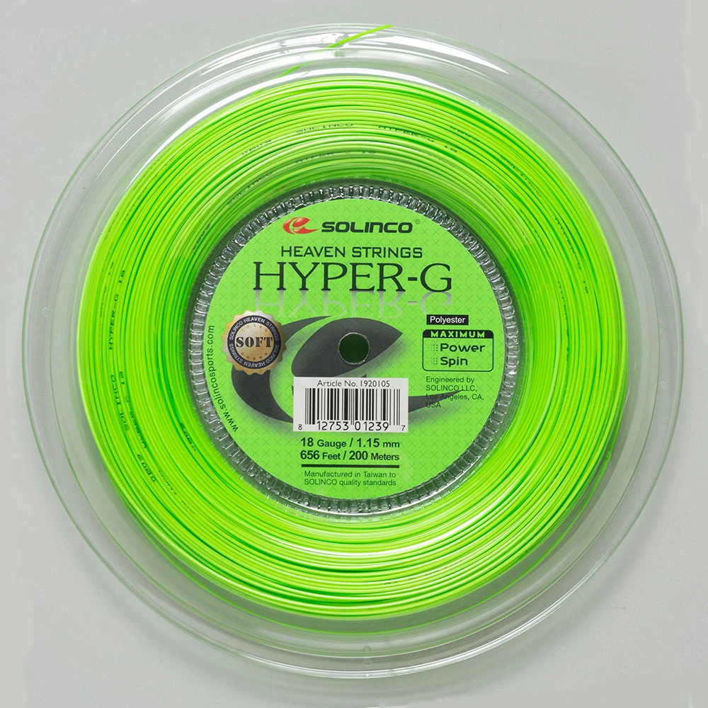 The Solinco Hyper-G Soft 18 1.15 656′ Reel is a versatile co-polyester string designed to provide excellent playability and control on the court. A newly developed softening formula generates impressive power and intense spin, giving players the edge they need during the match.