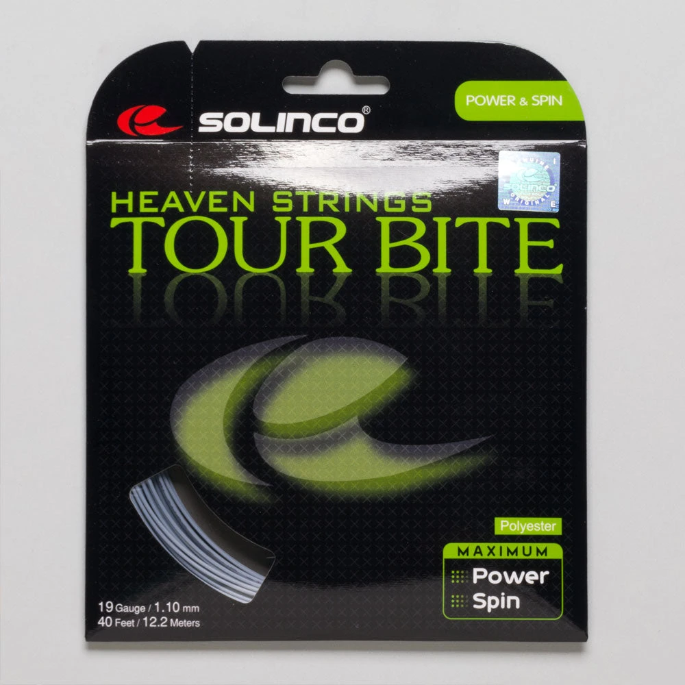 With a super thin 19 gauge for enhanced ball feel and bite, the newly developed Solinco Tour Bite 19 1.10 tennis string is a high-performance and versatile polyester string designed to generate extreme power and intense spin and bite. It uses an innovative, high-powered polyester monofilament fiber that generates maximum power while amplifying the spin and bite intensity of the ball.