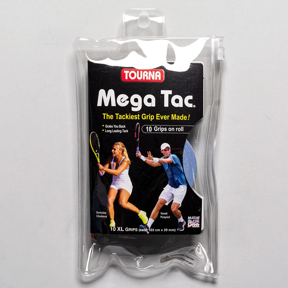 Wrap your racquet handle in the long-lasting tac of Tourna Mega Tac overgrip, especially beneficial for cooler weather play. This overgrip prevents your racquet from twisting and sliding in your hand. Features a wet feel.