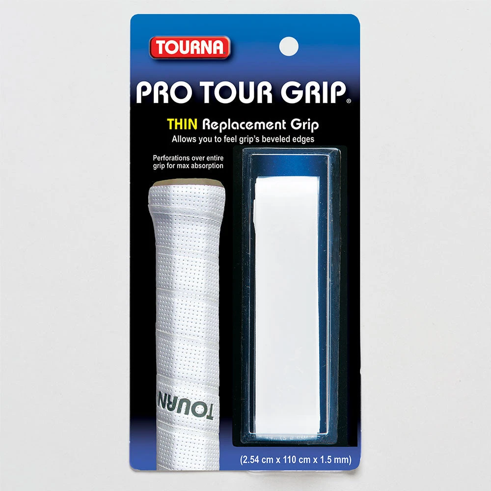 The Tourna Pro Tour Thin Replacement Grip is designed to give a unique blend of racquet feel and cushioning.