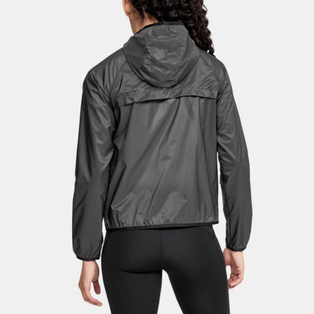 Never get rained out during a run again! The ultra-lightweight UA Qualifier Storm Packable rain jacket can be folded into the left pocket, which also doubles as a zippered pouch that you can easily carry with you or attach to a running belt or backpack.
