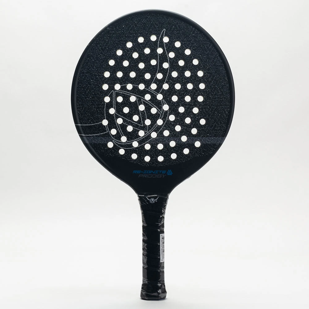 Set the courts on fire with the Viking Re-Ignite Prodigy! As the lightest model in the lineup, this platform tennis paddle features a Low core density to create a slingshot effect at contact. The Carbon Fiber Stability System provides the optimal blend of power and maneuverability, providing a whippy feel to enhance paddle speed. The grit surface texture offers comfort without sacrificing durability.