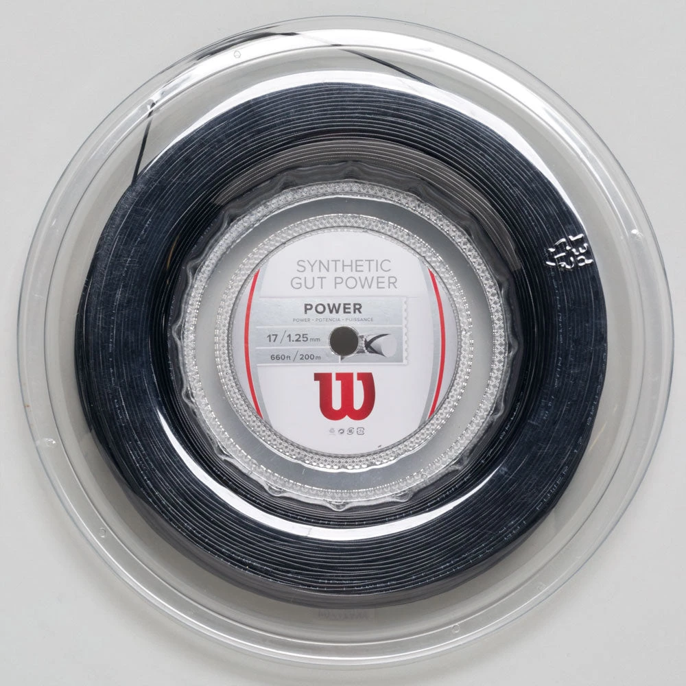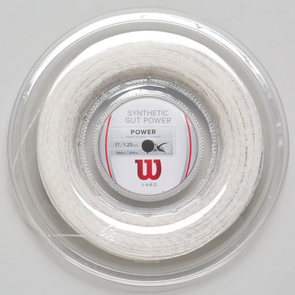 Wilson Synthetic Gut Power 17 tennis string combines durability and power. A high energy wrap contributes to the tough structure.